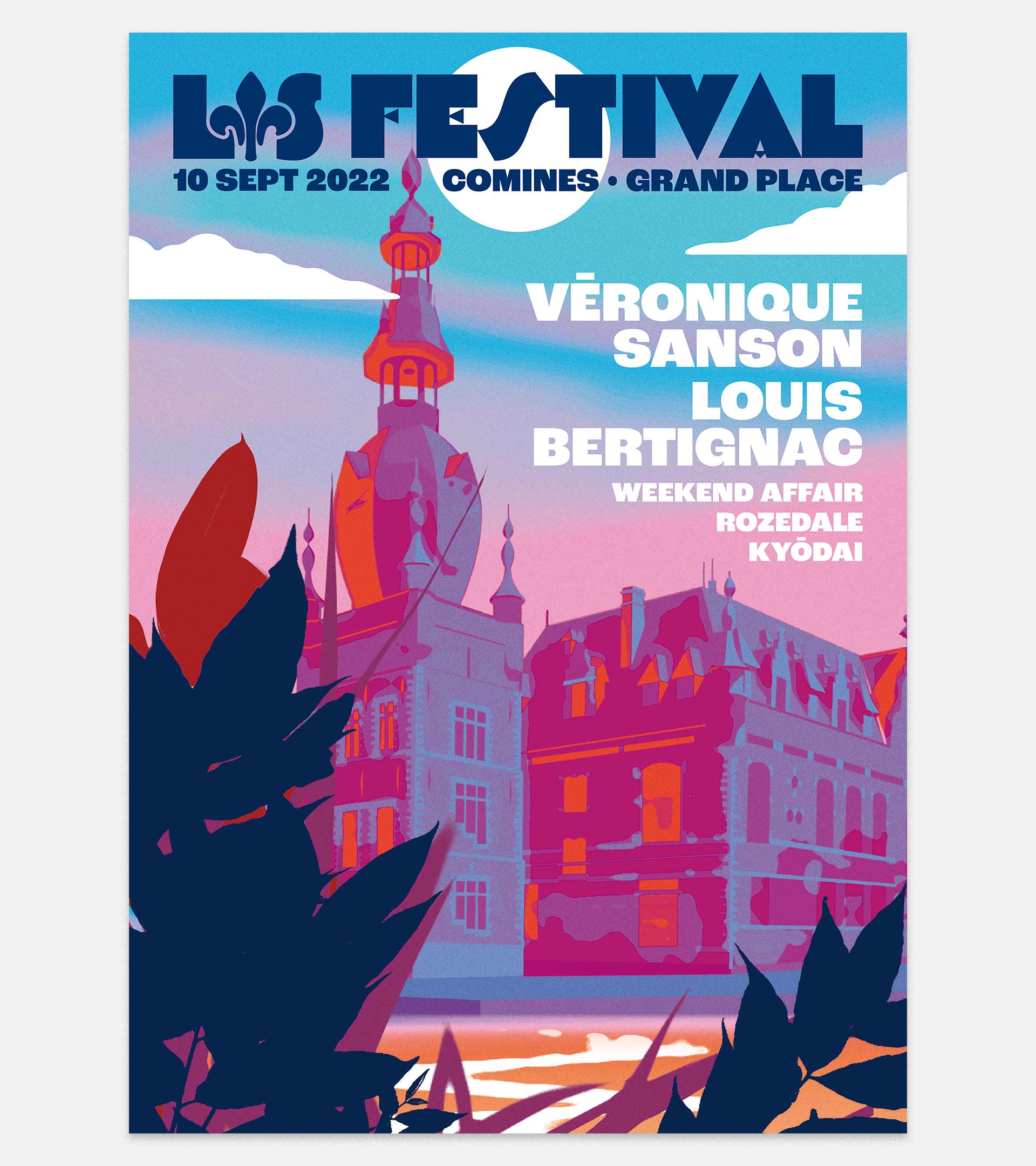 Affiche pour la première édition du Lys Festival, grande fête autour de la chanson française qui prend place sur la grand place de Comines, Nord.