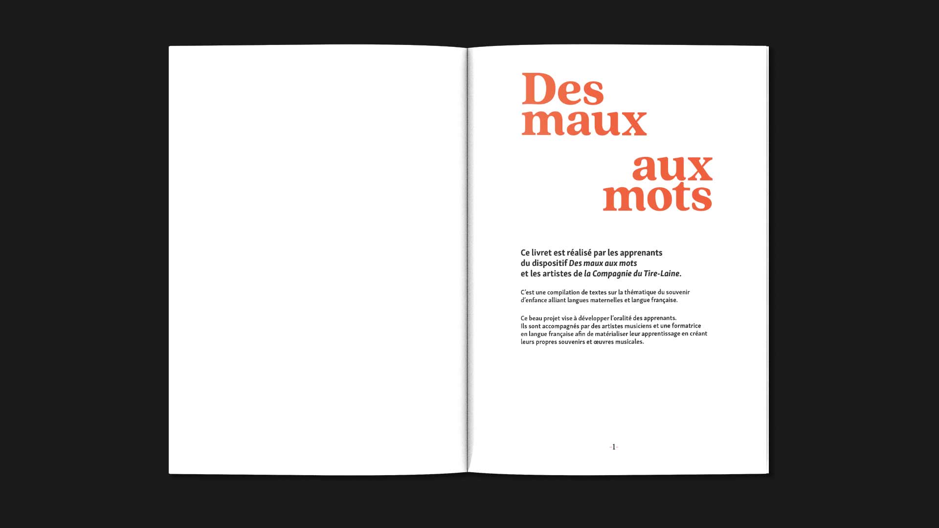Des Maux Aux Mots est un livret réalisé par les apprenants du dispositif du même nom et les artistes de