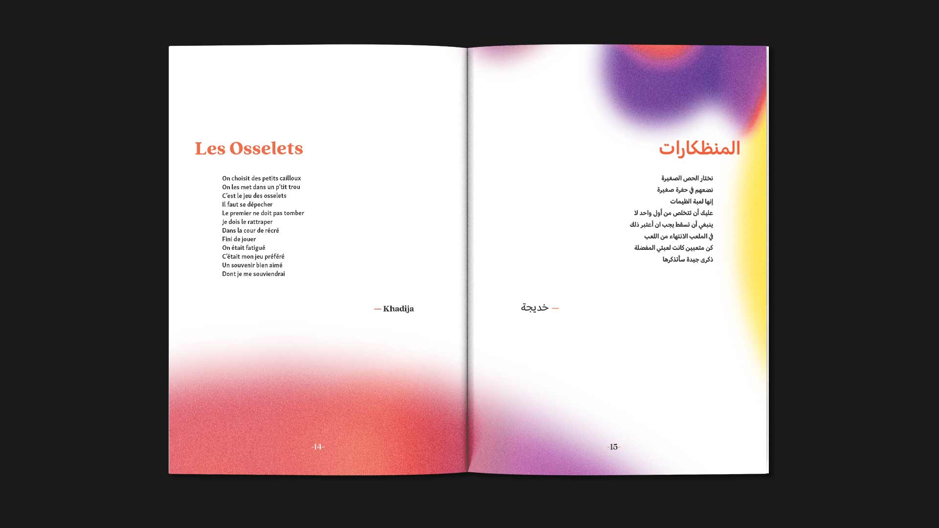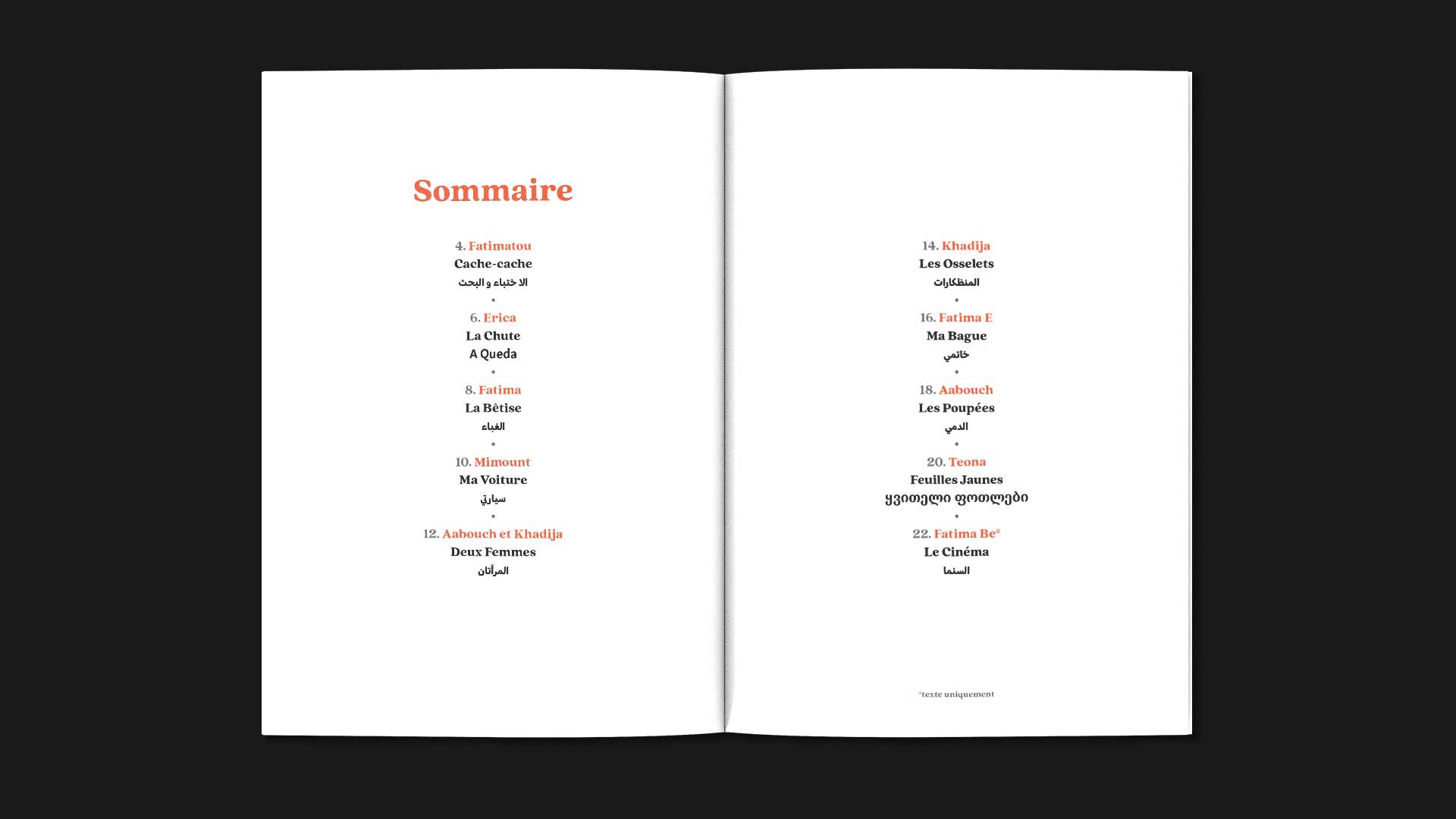 . C'est une compilation de textes sur la thématique du souvenir d'enfance alliant langues maternelles et langue française. Le livret est mis en musique par les artistes musiciens de la compagnie.