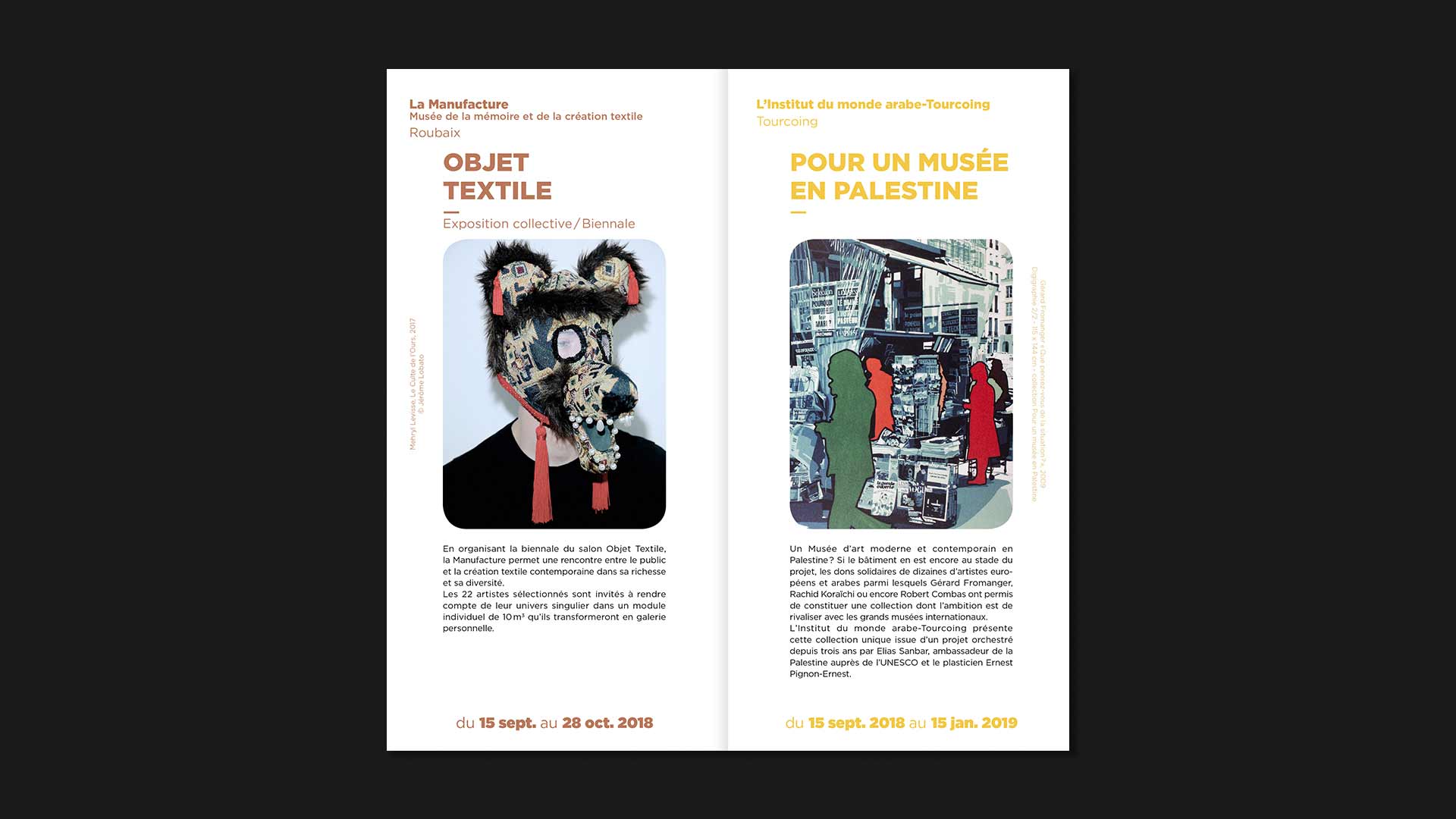 Mise en page du programme des expositions des musées & centres d'art pour la